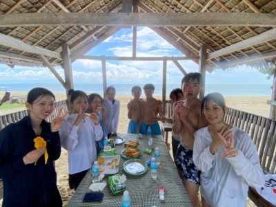 当日は朝から快晴に恵まれ、午前中はシュノーケリングを体験しました。海の中はテレビで見るようなサンゴ礁や魚たちの姿に心を奪われる場面もあり、充実した時間となりました。そして午後からはセブ島でも有数のビーチまで足をのばしました。昼食は食べきれないほどのバーベキューでお腹を満たし、ビーチボールを楽しんだり、海で泳いだりするなど、常夏の海を満喫することができました。
