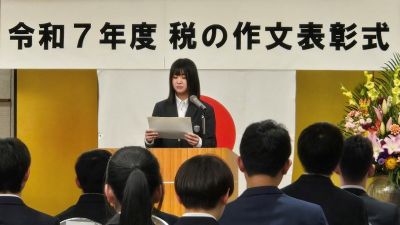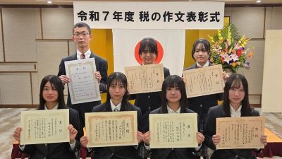 11月13日(木)に「令和7年度 税の作文表彰式」(主催:神戸税務署・神戸納税協会・神戸納税貯蓄組合連合会)が、湊川神社楠公会館で執り行われました。本校からは中学生3名と高校生4名の作品が入選し、主催者から表彰状を受け取りました。また、受賞者の表彰後、高校生の代表として本校生徒が作文を朗読させていただきました。