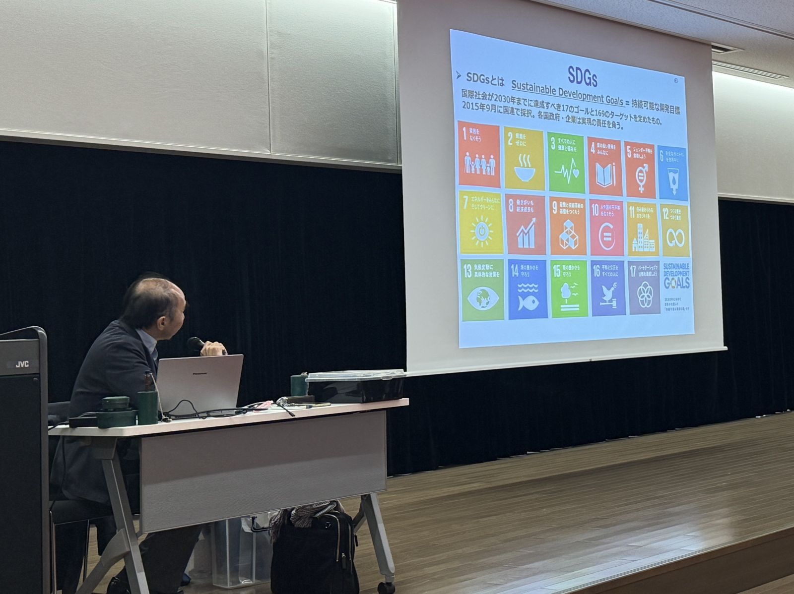 講演していただいた柳楽さん(コマツ サステナビリティ推進本部 地雷除去プロジェクト室主査)は、カンボジアでの地雷除去プロジェクトがスタートした時から、リードエンジニアを務められているそうです。必要とされる資金を調達するためのNGOや政府との調整、標準的ブルドーザーを対人地雷除去機へ改造するための技術的な取り組みについて等のお話をしていただきました。