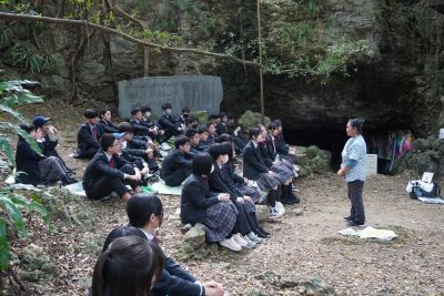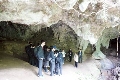 午後は、沖縄戦で防空壕として使用された自然洞窟の入壕体験や、地域ガイド「風の会」比嘉涼子さんによる講話を聞きました。戦争の悲惨さ、平和の大切さや有り難さについて学び、感じる時間となりました。