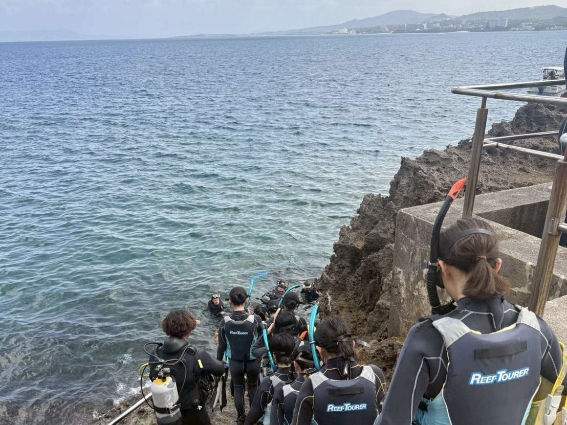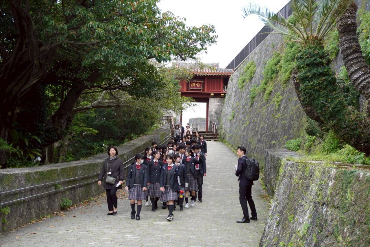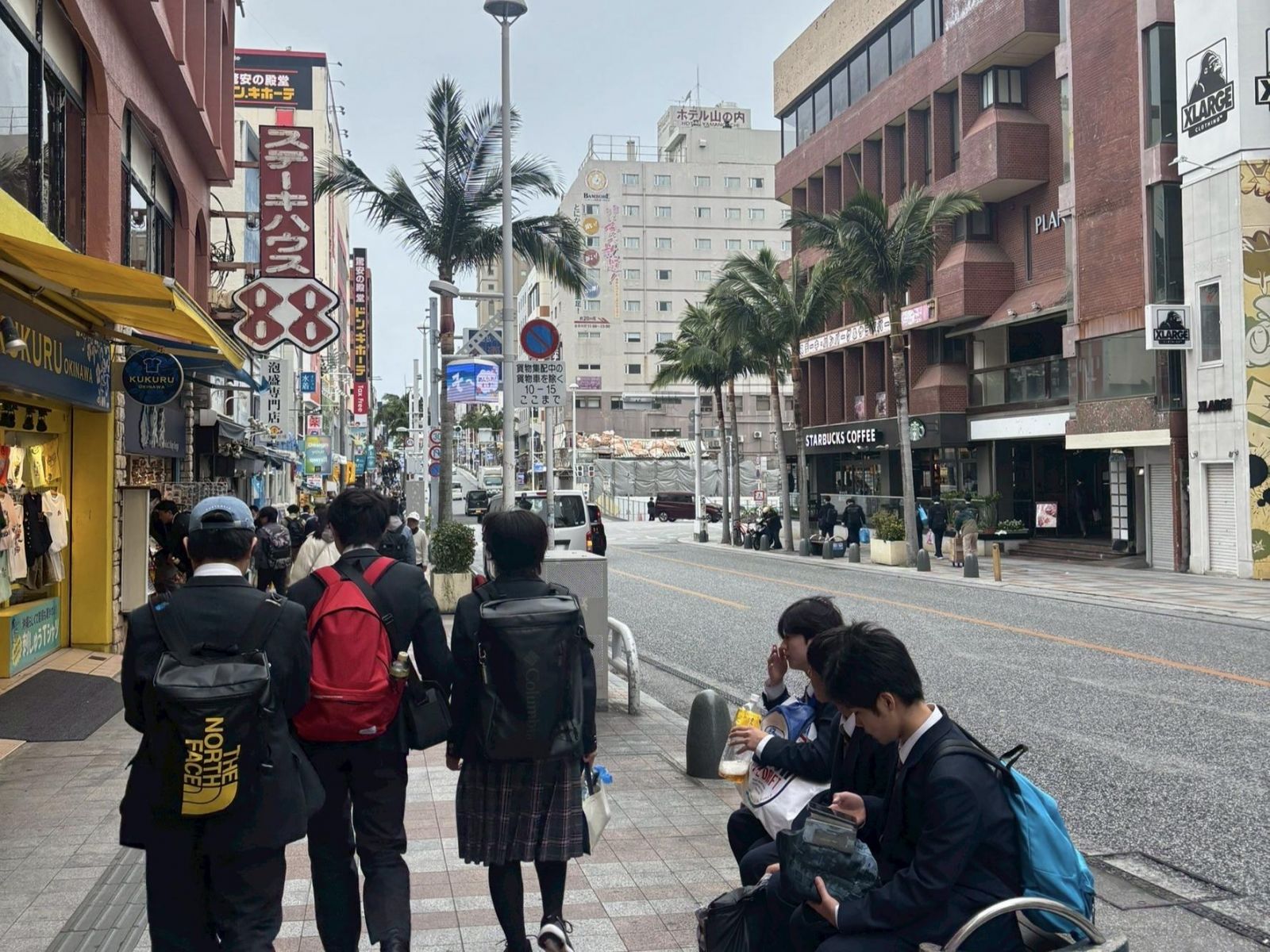 沖縄研修3日目は午前にマリン体験や文化体験、午後からはタクシー研修でした。沖縄の海で自然を満喫したり、シーサーづくり体験したりした後には、タクシー班に分かれてアメリカン・ヴィレッジや琉球村など、自分たちで決めた行き先へ向かいました。翌日の研修最終日、首里城の見学や国際通りでの班別自主研修を終了し、沖縄でのすべてのプログラムを終えました。
