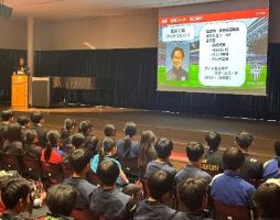 2026年3月10日(火)に、本学院とのパートナーシップ事業の一環として、ヴィッセル神戸サブチーフスクールコーチを務める里見仁義氏を講師にお招きし、本校プラムホールにて、特別講義を実施致しました。