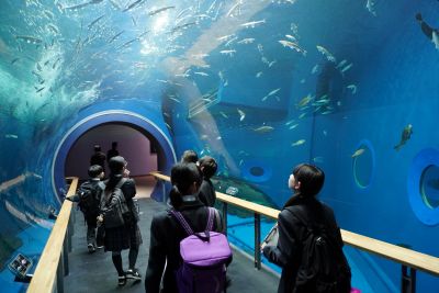 その後は琵琶湖博物館へ移動。班別に琵琶湖の歴史や環境、生態系についての学習です。生徒たちは熱心にメモをとりながら、展示物を見学しました。